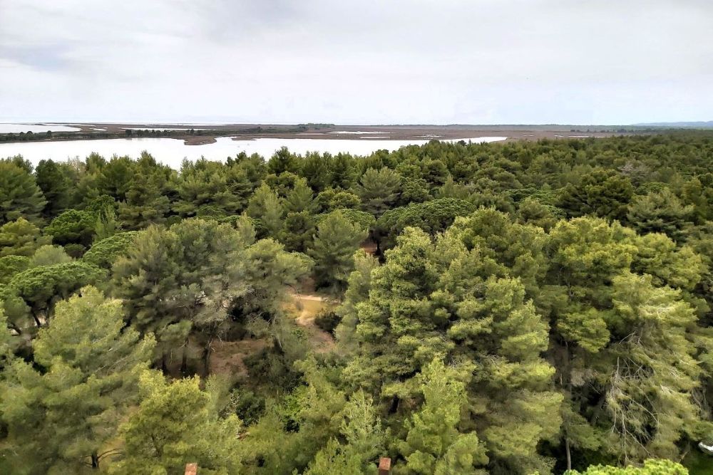 Wir entscheiden uns, noch ein paar Kilometer weiterzufahren zur Lagune von Narta. Auf der größeren der beiden Inseln in der Lagune liegt das Kloster der Maria Himmelfahrt, dass über einen Holzsteg mit dem Festland verbunden ist.