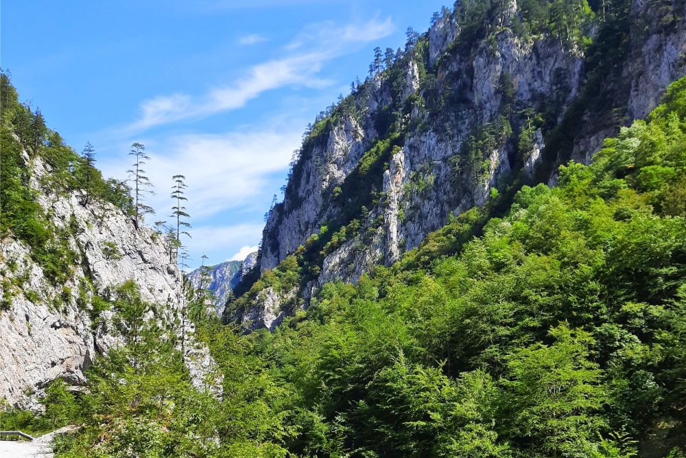 So langsam verengt sich das Tal, die Felswände links und rechts kommen immer näher. Hier gibt es keine Häuser mehr. Ohne die viel befahrene Straße wäre dies ein ruhiger und friedlicher Ort. Doch wir sind auf einer der Lebensadern des Landes, die Nord und Süd verbindet.